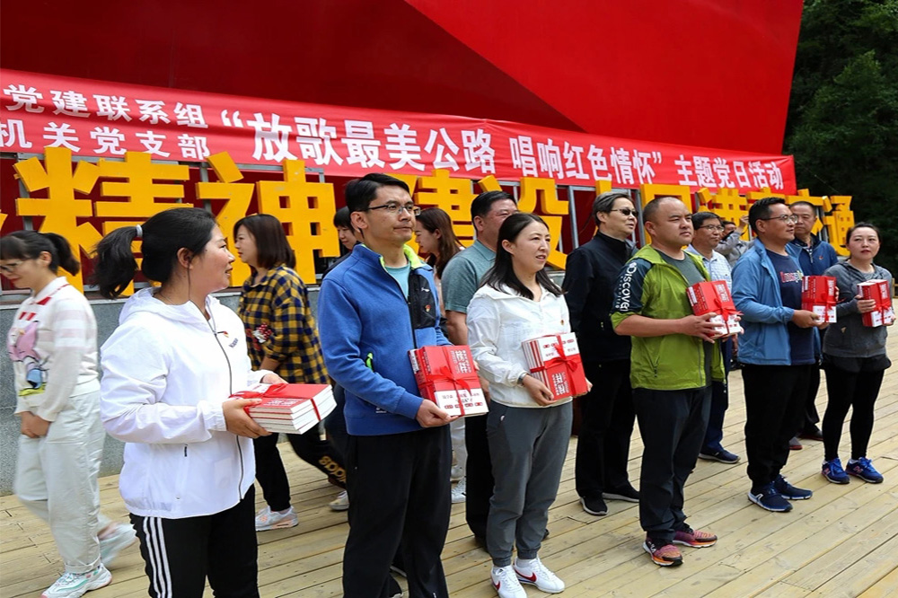 在不忘初心紅色教育陣地,面對黨旗,黨員們舉起右拳,一起重溫入黨誓詞,以堅定有力的宣誓聲,表達(dá)不忘初心、砥礪奮進(jìn)的信念及決心。在現(xiàn)場氣氛的帶動下,七十余名參加活動的黨員們高唱《我和我的祖國》、《我們走在大路上》,大家用真摯的歌聲,謳歌建黨以來的偉大歷程和輝煌成就,表達(dá)對黨的深情。合唱結(jié)束后,省交通運輸廳第二黨建聯(lián)系組與省路政總隊機關(guān)支部開展贈書活動,進(jìn)一步激發(fā)黨員干部職工的讀書熱情和學(xué)習(xí)積極性。隨后,大家沿著“最美生態(tài)公路”扎碾公路進(jìn)行徒步活動。