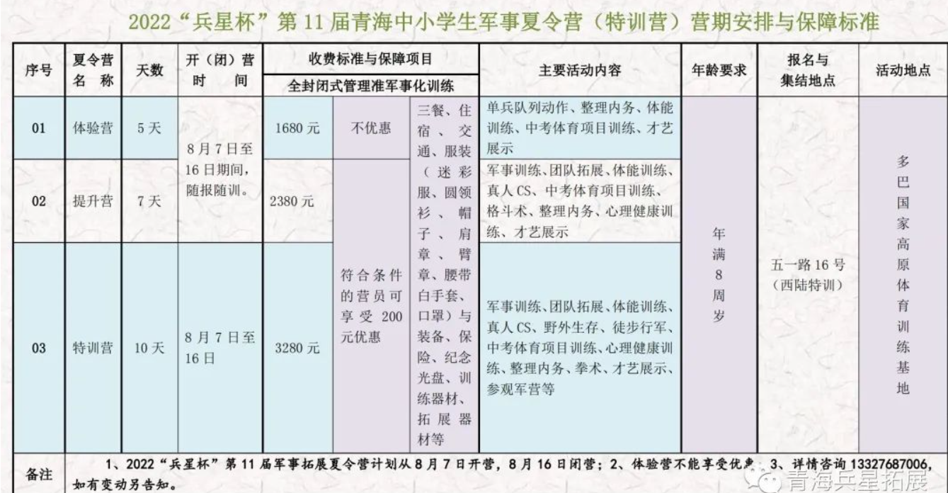 2022“兵星杯”第11屆青海中小學(xué)生軍事夏令營(特訓(xùn)營)活動介紹