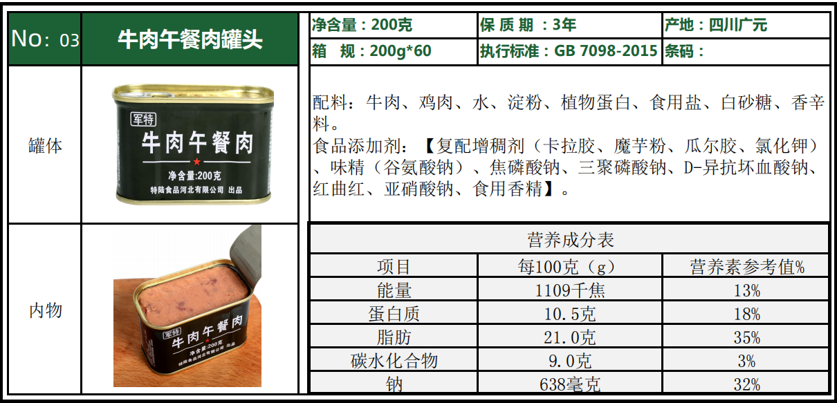 軍用罐頭與民用罐頭相比,具有固形物含量多、真空度高、儲存期長和包裝牢固等特點。通常用于生鮮食品供應(yīng)困難的部隊。