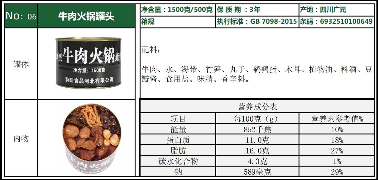 軍用罐頭,是軍用食品的一種,因其在常溫下可長期貯存,耐外界不良條件的能力強的特點而在軍用食品領(lǐng)域占據(jù)重要的地位,是保障士兵在野外持續(xù)作戰(zhàn)或執(zhí)行任務(wù)的必須裝備。